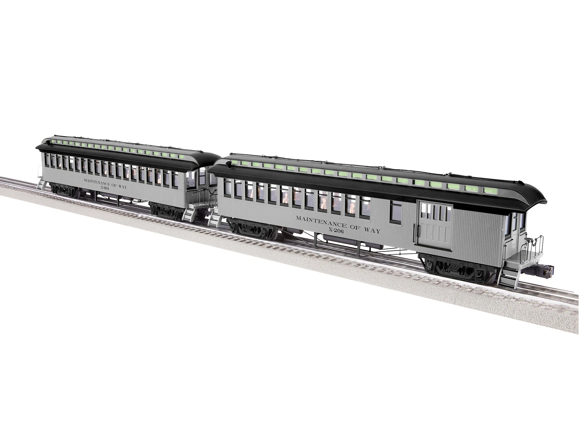 Wood passenger cars posses an indisputable charm, beauty and craftsmanship which harkens to an era of both endless hard work and optimism. Craftsman displayed skill and pride from the most opulent private cars to “humble” coaches. Although quickly replaced by stronger, larger and safer steel cars in the 1910s, a precious few examples found their way into maintenance service on work trains and in rail yards. Today these afterthoughts have become prized candidates for restoration in museums around the country. Recreate this guilded era of rail travel on your layout with these new 64′ passenger car sets. Featuring flicker-free LED illumination, detailed interiors with figures and loaded with fine detail, these models are a fitting tribute to their era. For more modern eras, pairs of maintenance of way cars are also available – perfect for pairing with your wreck train or other MOW cars and equipment.
